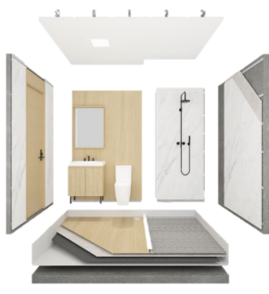 在SI体系之上,结合应用场景需求,通过研发设计,将内装空空间划分成标准化的模块单元,可以是独立空间的模块单元,比如整体卫浴,整体厨房,整体酒店客房,也可以是部品模块,比如集成吊顶,集成墙面,集成收纳等。通过这些模块单元的组合和搭配,实现建筑空间的灵活设计和快速建造。